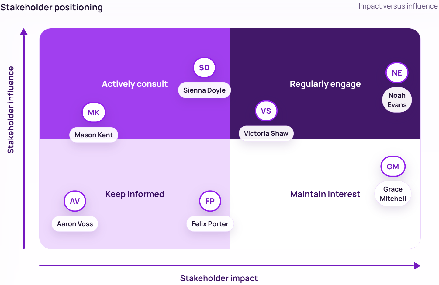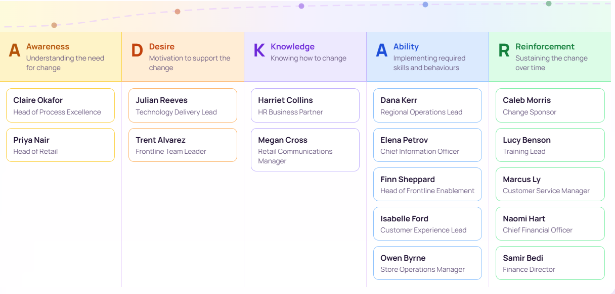 Track stakeholder movement, uncover risk, and see progress across your change, all in one live view.